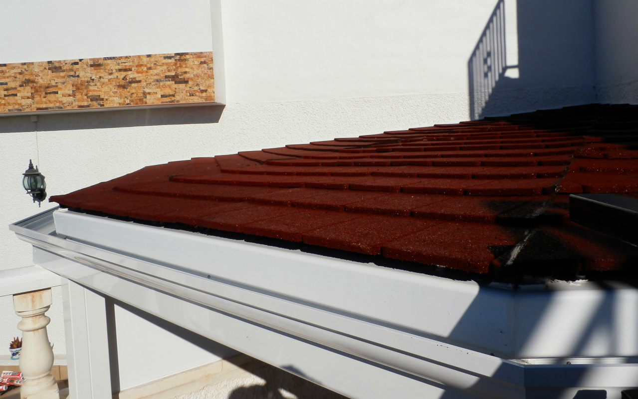 Tigla neagra cauciucata-reduce zgomotul ploii de pe acoperisul terasei